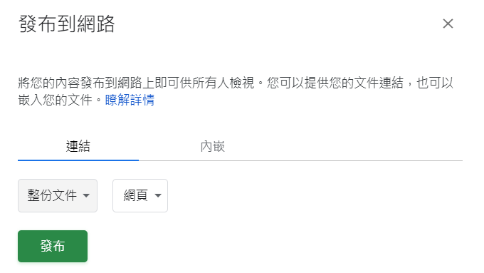如果我們要寫程式去讀取google sheet 首先需要先把你要讀取的google 工作表 發佈到網路上