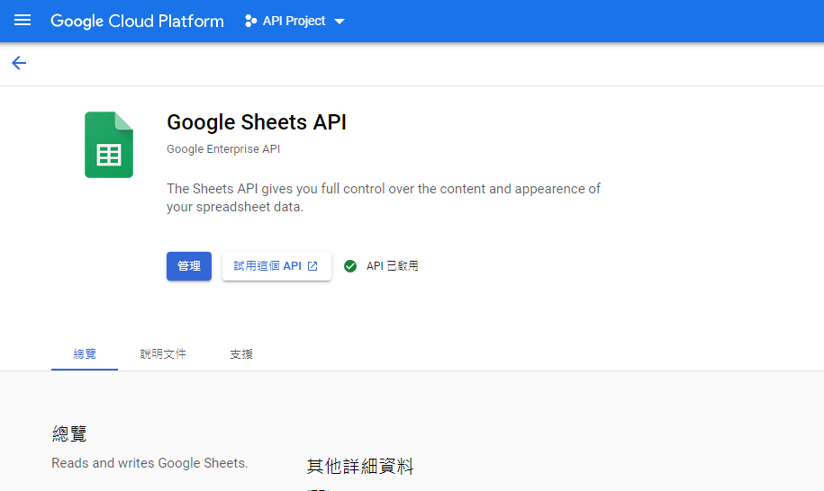 喔 對了,我還有啟用google sheet api這個服務拉,這個應該也要啟用才對
