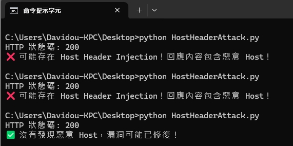 print("✅ 沒有發現惡意 Host,漏洞可能已修復!")