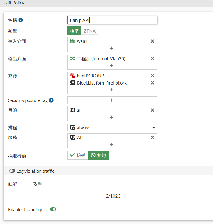 有鑑於網路攻擊實在是太頻繁了。有的時候常常被人家DDOS在掃,且常常都在半夜 實在不堪其擾,以往就會直接看一下是哪個IP太頻繁在攻擊然後把他設定位址物件來ban掉,但這終究不是解決的辦法…